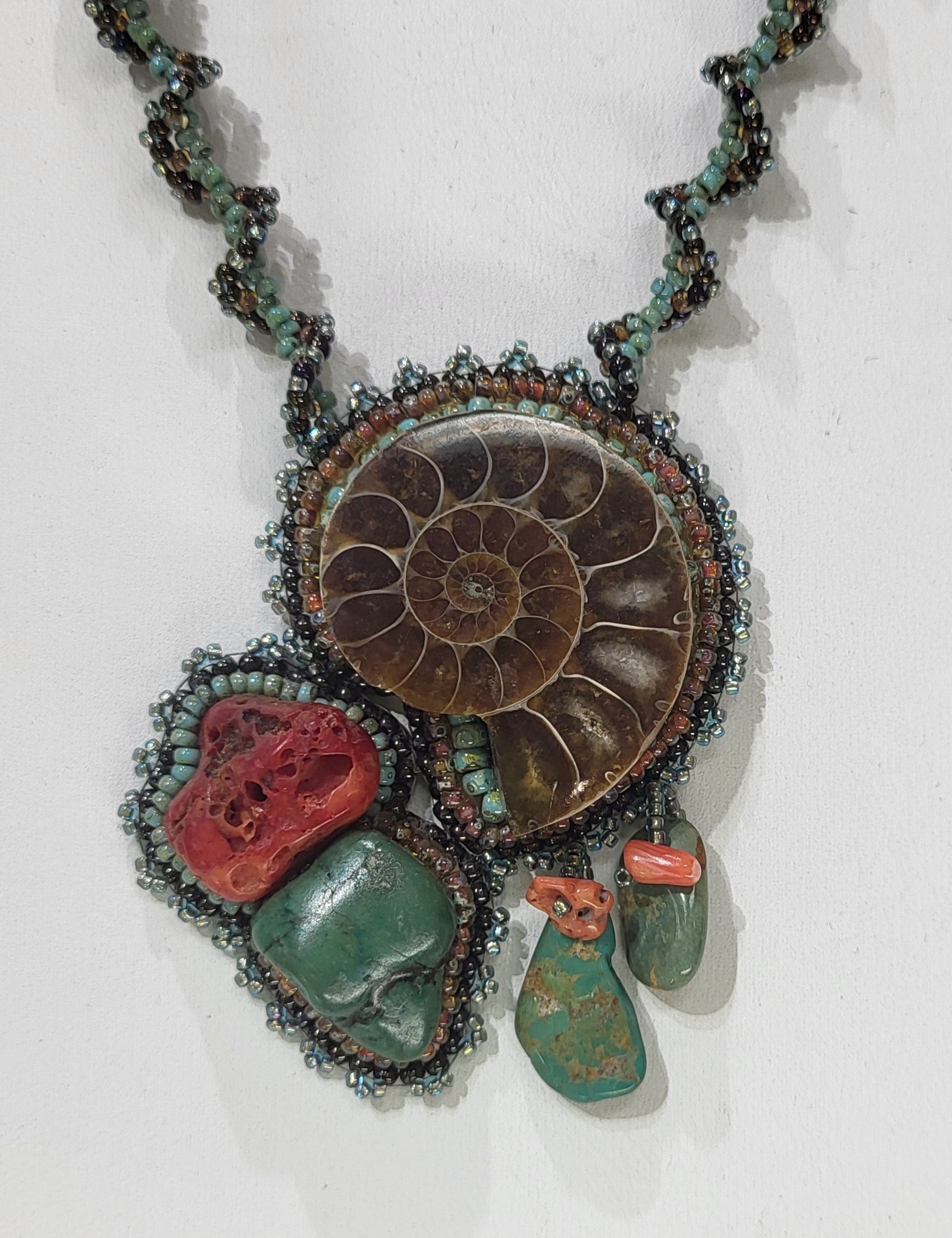 In this beginner Bead Embroidery class you’ll make a pendant with one or more focal elements. This is a very fun and easier-than-it-looks way to make a stunning piece of jewelry.